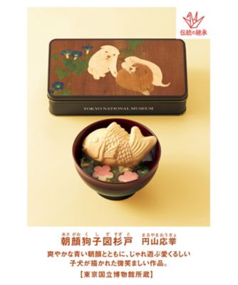 久右衛門の鯛最中のお吸い物3個入り。缶は円山応挙「朝顔狗子図杉戸」。